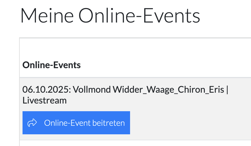 Heute Abend ist es wieder so weit. Wir treffen uns per Livestream zur Vollmond-Meditation. Der Mond befindet sich in Widder, in der Nähe von Chiron und Eris - die Göttin der Zwietracht. Die Sonne befindet sich in Waage. Damit stehen nun alle Beziehungen und Partnerschaften im Fokus. Und es ist ratsam, sich jetzt innerlich zu stärken, denn bis Januar 2026 ziehen mächtige Energie-Stürme auf.